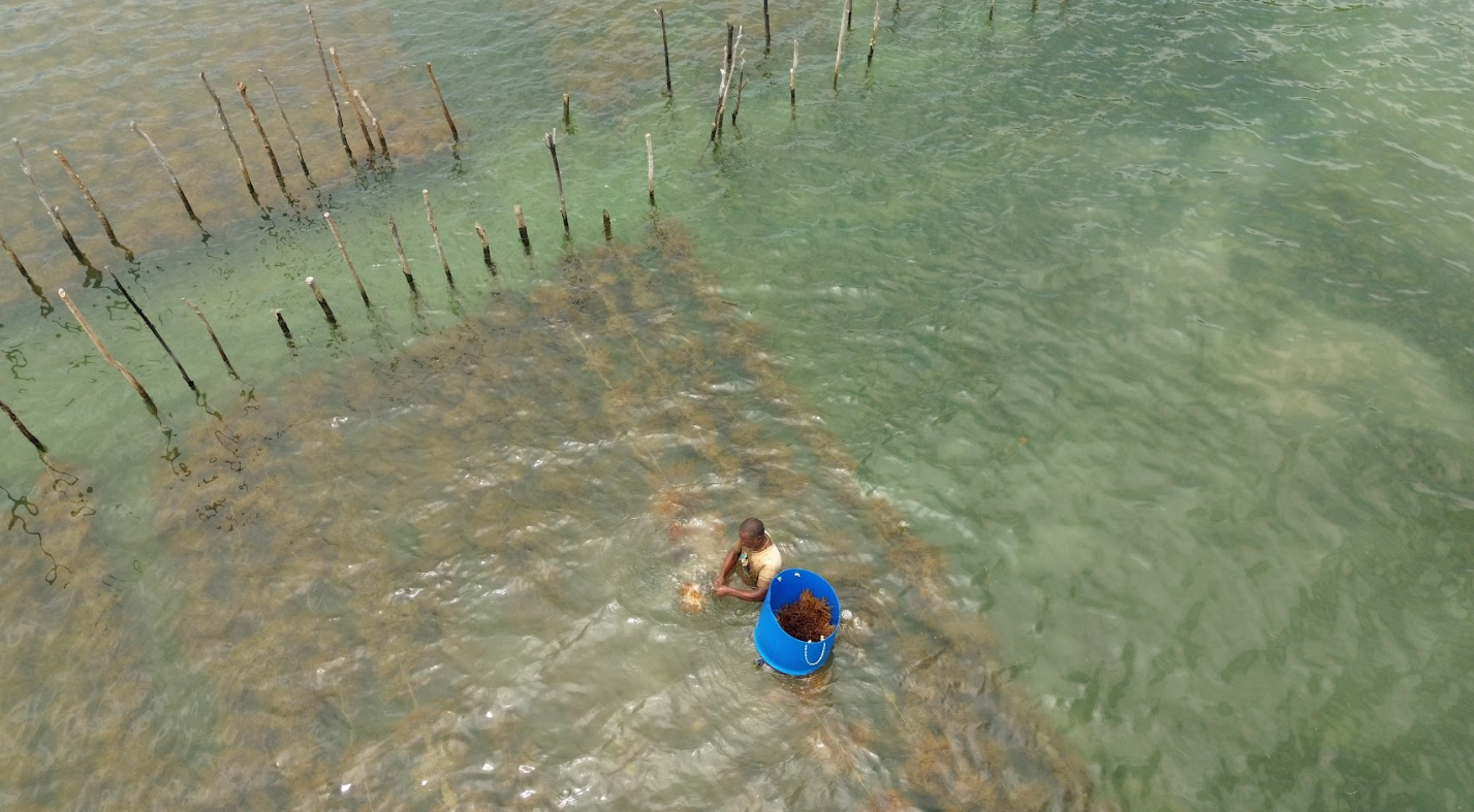 Hand-harvesting seaweed, St Lucian